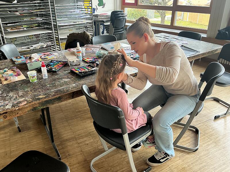 Für die Theaterstücke bauen unsere Schülerinnen und Schüler auch mit den Kunstlehrkräften die Kulissen.